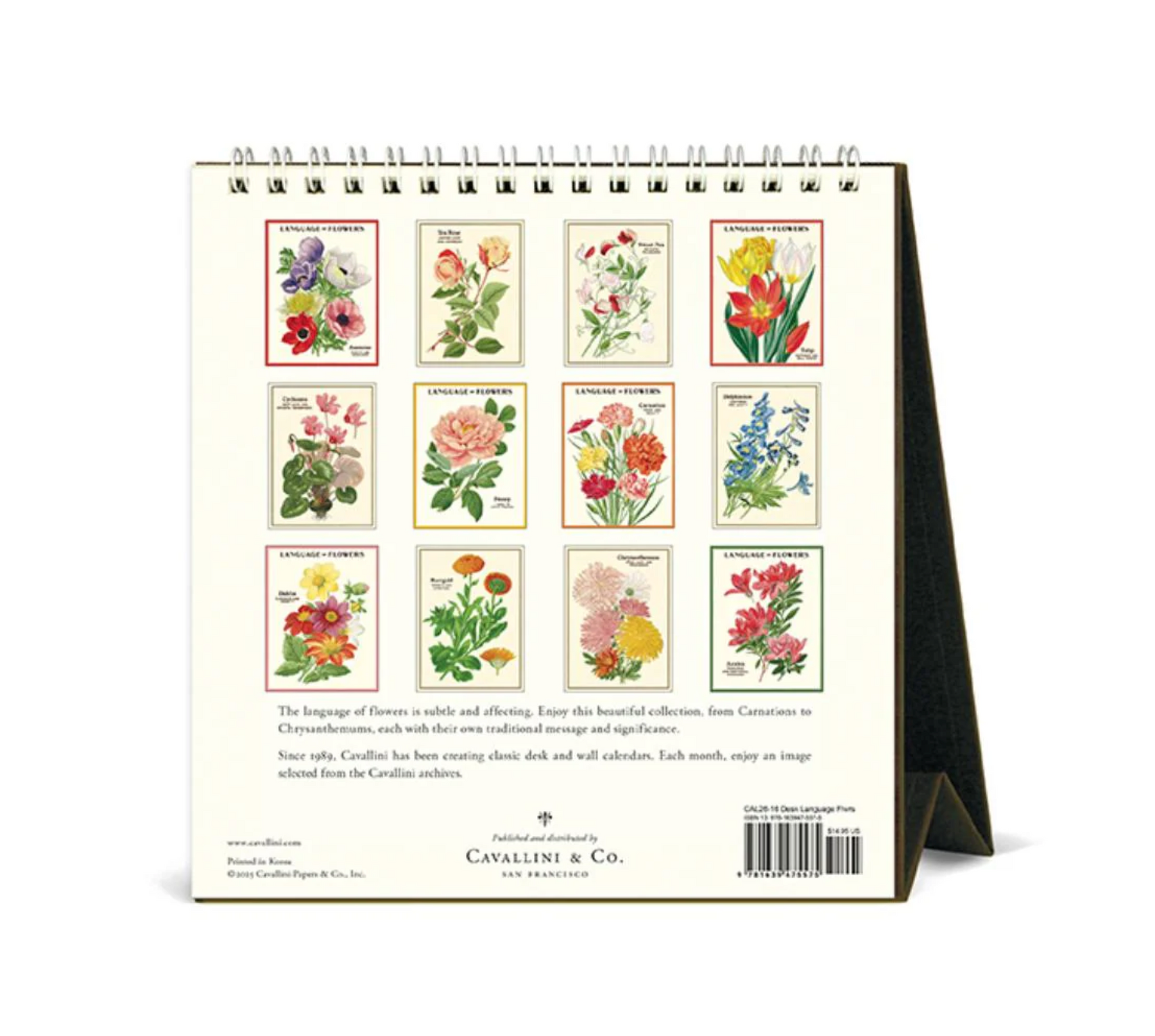 Uncover the timeless symbolism of nature’s most beautiful blooms with the Cavallini 2026 Desk Calendar – Language of Flowers. Featuring a stunning selection of vintage botanical illustrations from the Cavallini archives, each month highlights a unique flower along with its traditional meaning—drawing inspiration from the Victorian art of floriography.