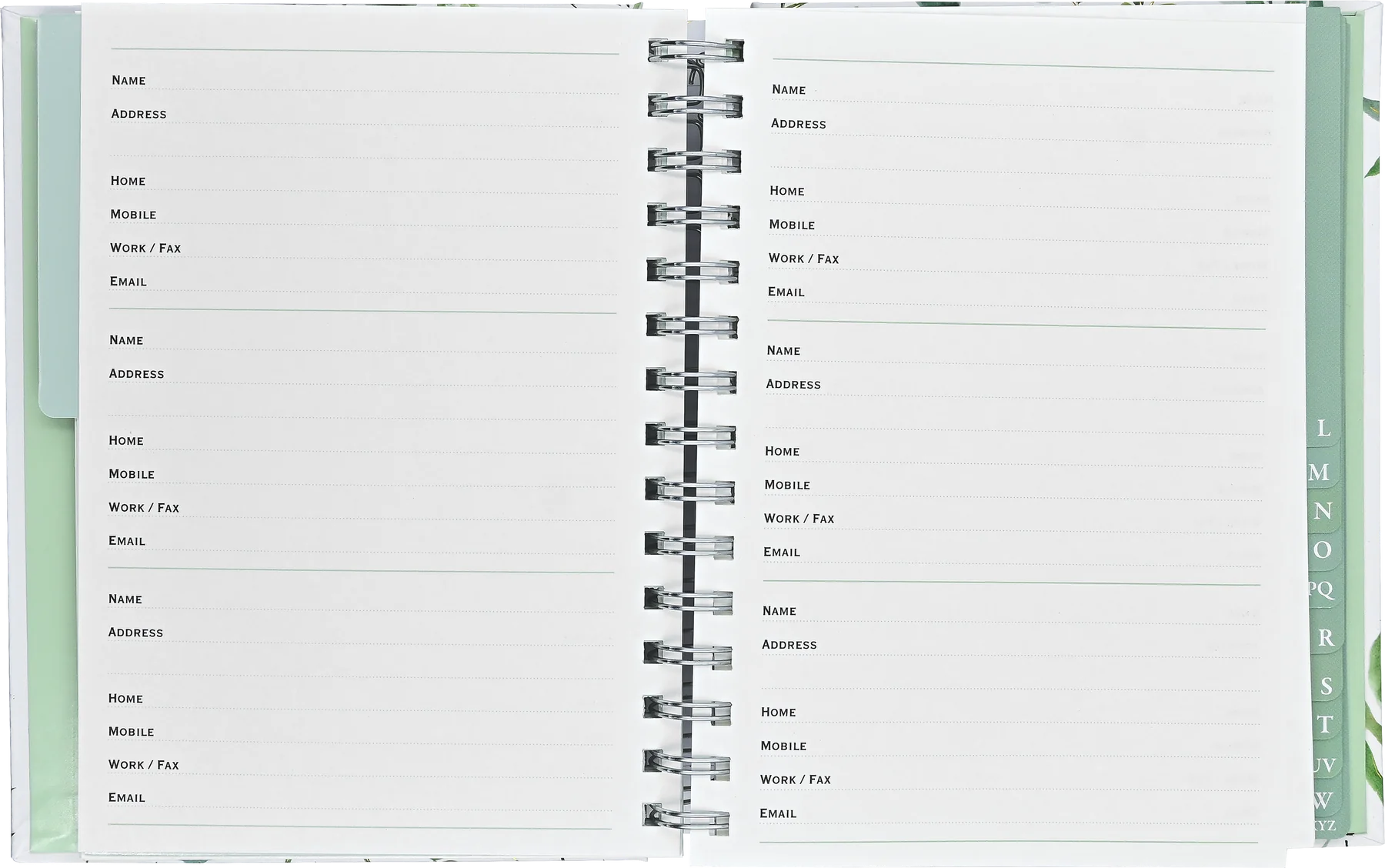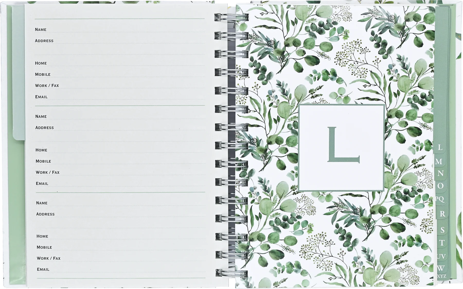 - The larger-size Eucalyptus Address Book provides space for more than 350 contacts!