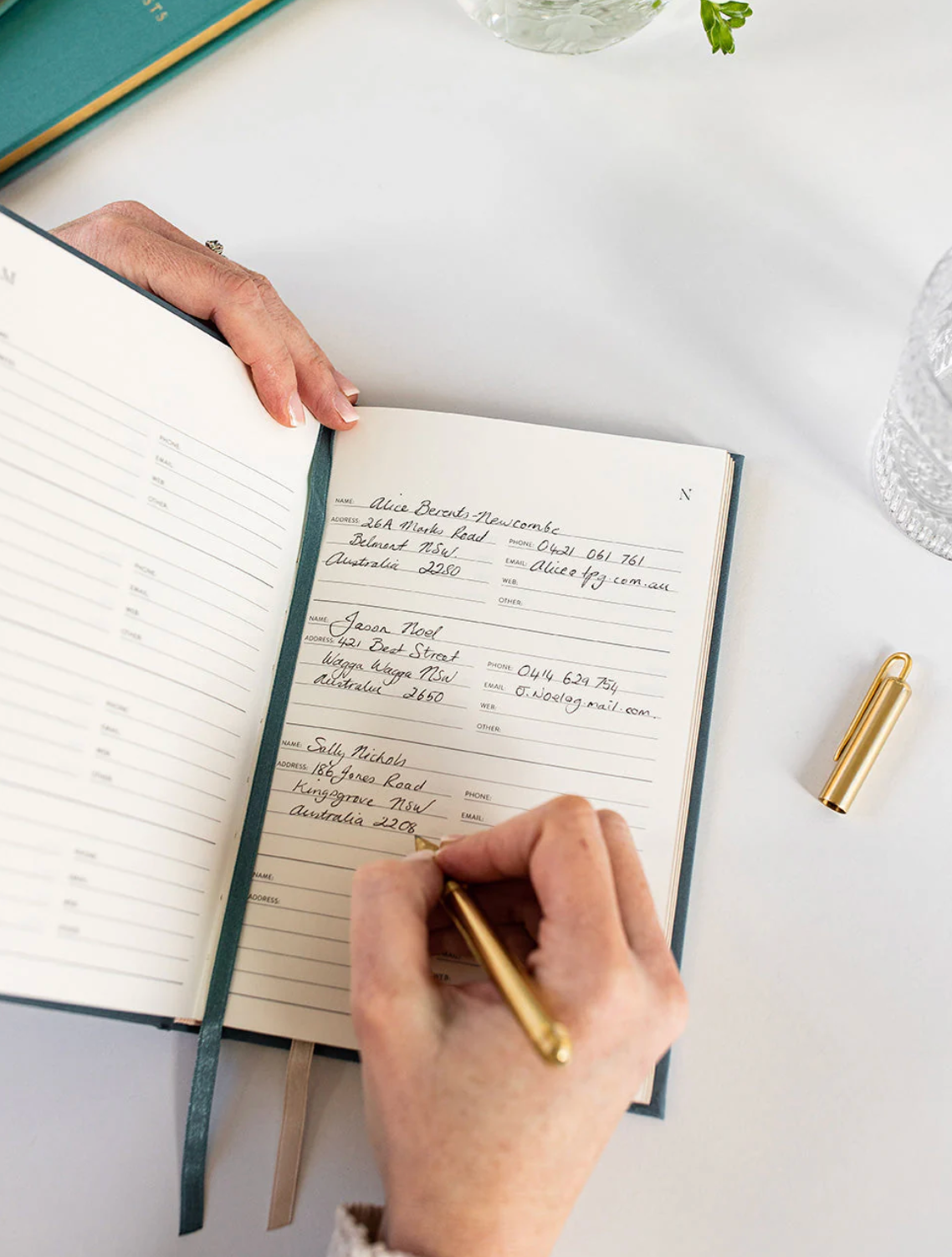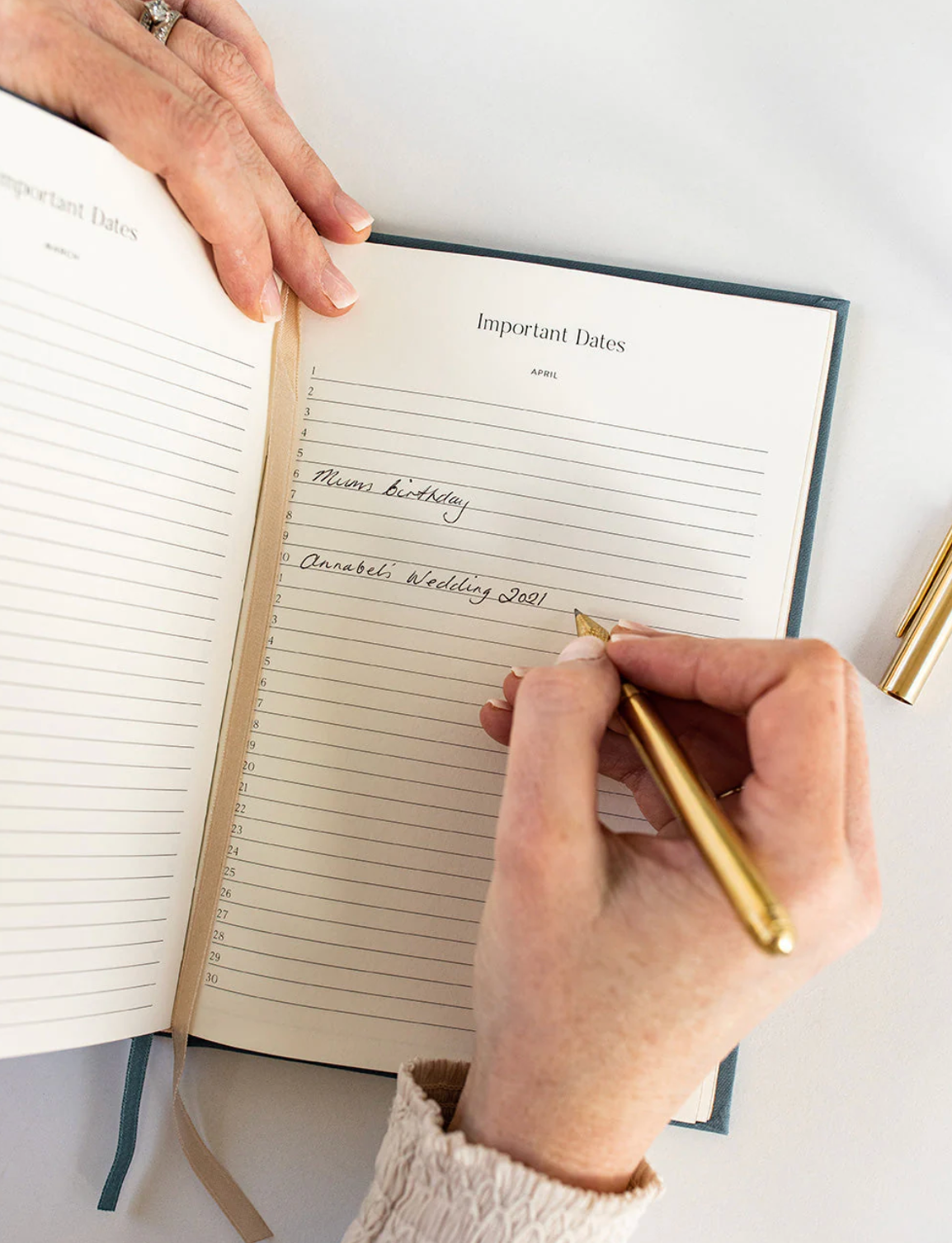 Stay beautifully organised with the Bespoke Letterpress Address Book in Kashmir Blue. Thoughtfully designed to keep all your important contacts in one elegant place, this linen-bound address book features space for over 300 alphabetised entries, along with dedicated sections for important dates and lined notes.
