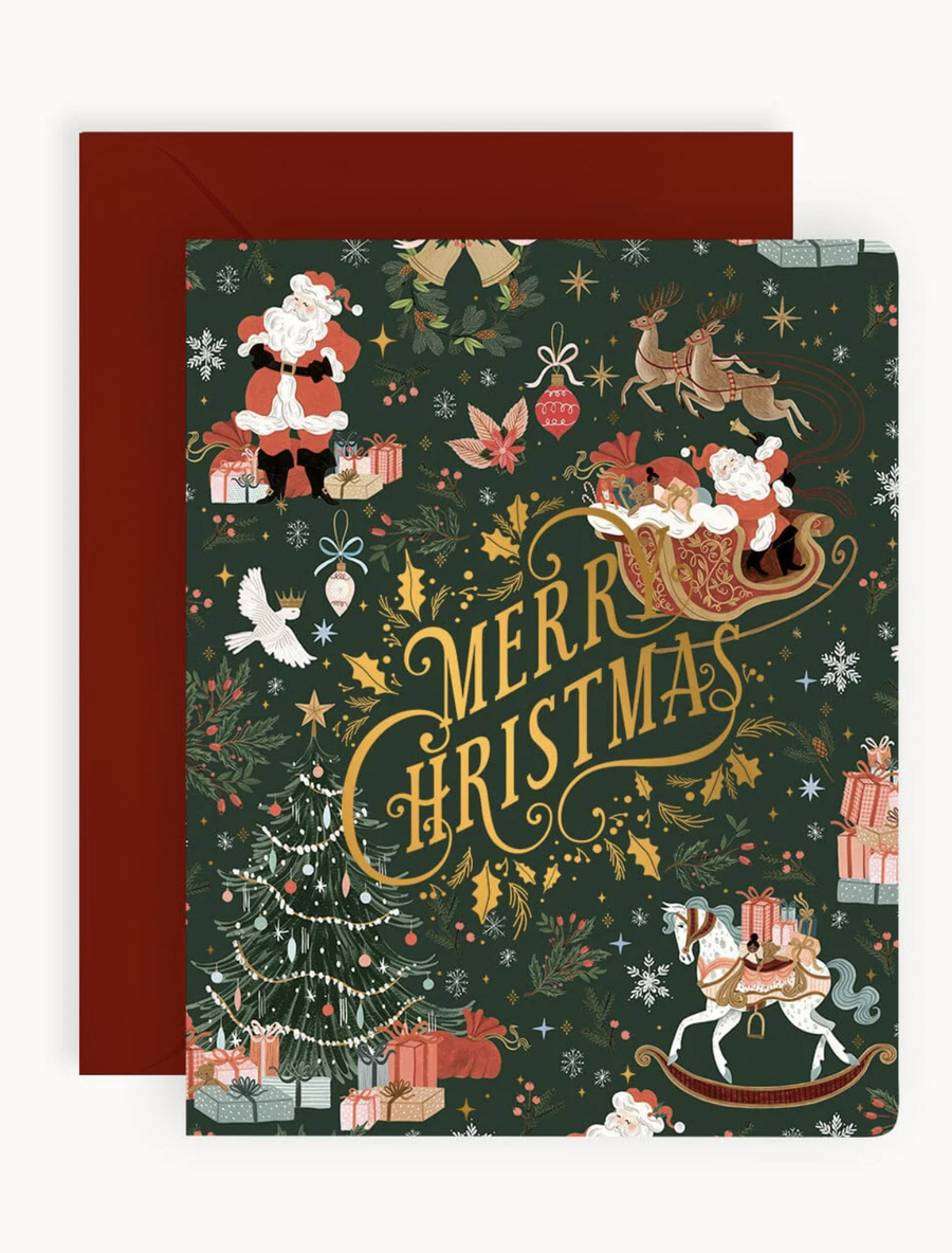 Bespoke Letterpress Christmas Card – Merry Christmas Jolly Santa [Gold Hot Foil]