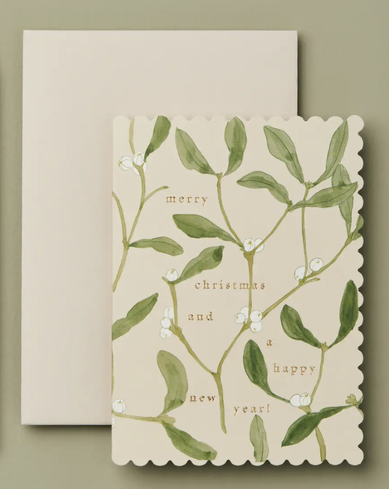 Celebrate the season in style with the Merry Christmas Card by Wanderlust Paper Co. This beautifully designed card features a painterly botanical print, delicate scalloped edges, and a festive gold foil greeting—perfect for those who appreciate thoughtful details and timeless elegance.