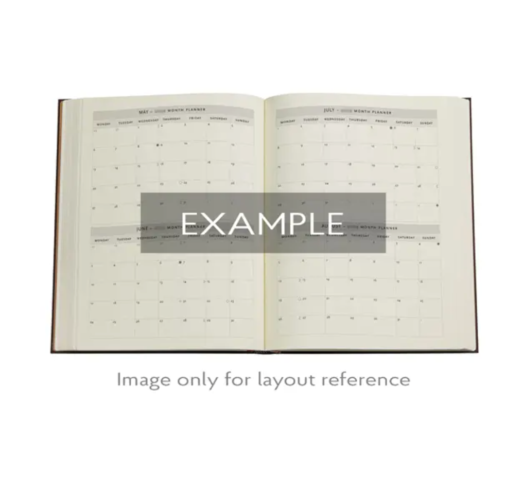 Wrapped in a crisp white hardcover with a secure wrap closure, this diary blends heritage, function, and sustainability for a refined planning experience throughout 2026.