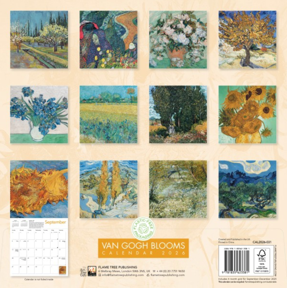 Celebrate the vibrant floral masterpieces of Vincent van Gogh with the 2026 Blooms Wall Calendar. Featuring 12 stunning artworks, including iconic pieces such as Sunflowers, Irises, and Almond Blossom, this calendar beautifully showcases Van Gogh’s remarkable ability to capture the beauty of nature through bold colour and expressive brushwork.