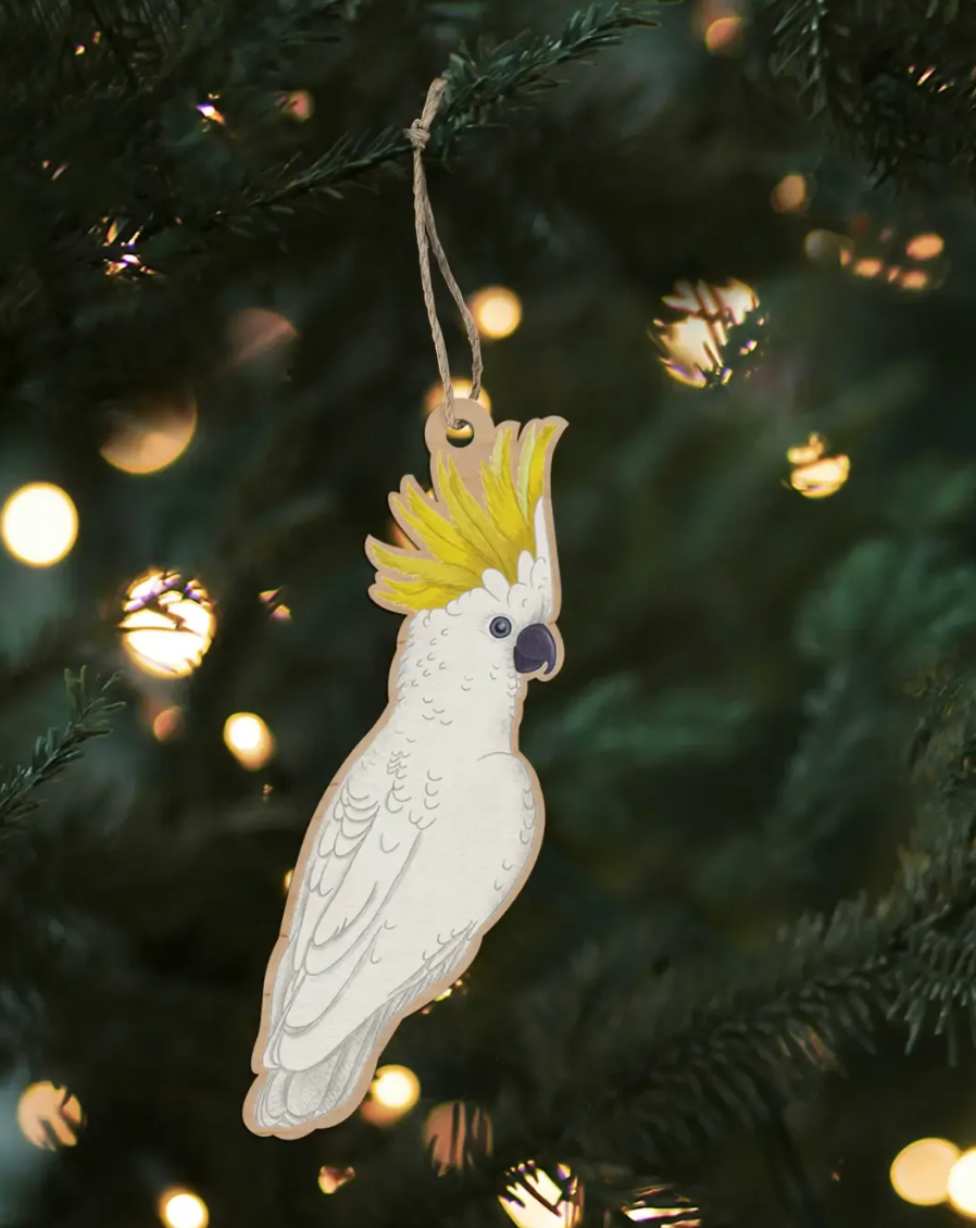 Wooden Christmas Decoration – Sulfur-Crested Cockatoo | Eco-Friendly, Australian-Made Ornament