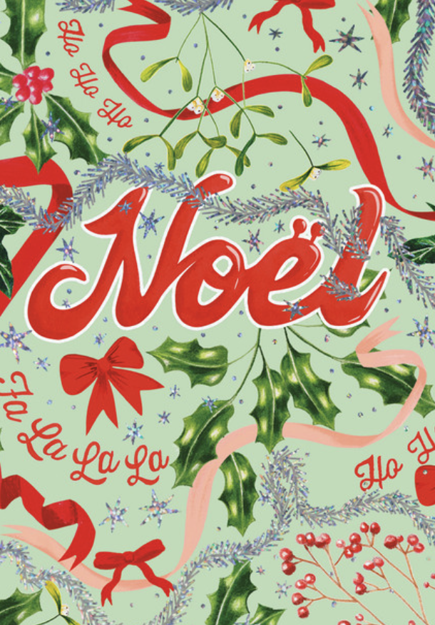 Art File Christmas Card - Noel Holly & Ribbons