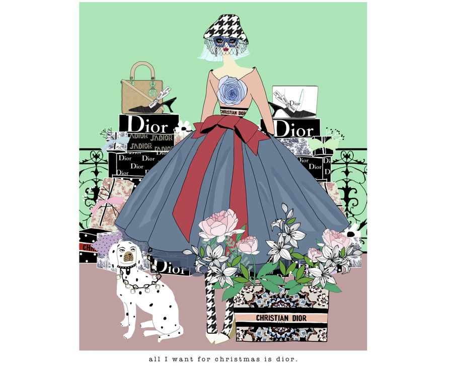 Chic, fashion-inspired "All I Want for Christmas is Dior" design