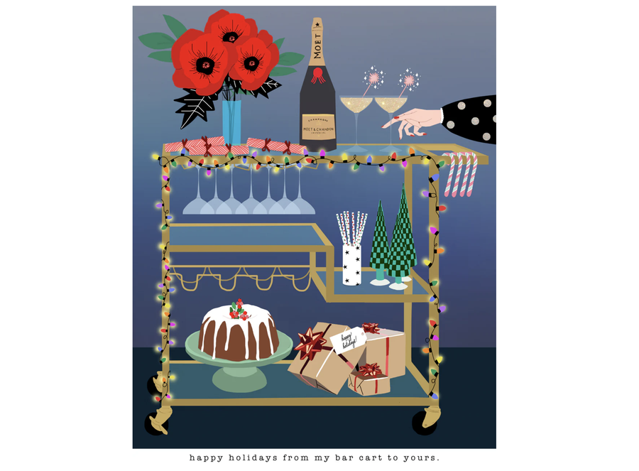 Festive and fun "Happy Holidays From My Bar Cart To Yours" design
