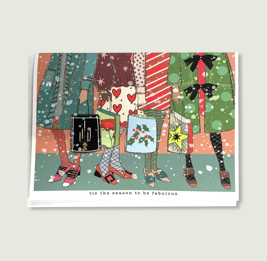 Verrier Hand-Embellished Christmas Card – "Tis the Season to be Fabulous" – Glittered Original Artwork