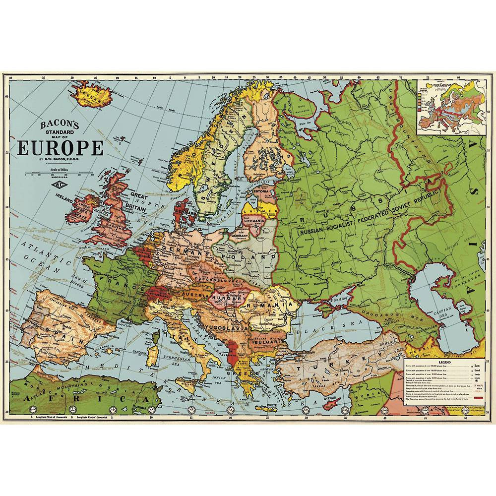 Cavallini wraps feature beautiful vintage designs printed on acid free archival quality paper. They can be used as gift wrap or framed as a poster as decorative art. All sheets as 50x70 cm and will be delivered in a canister. This particular design features a map of Europe.