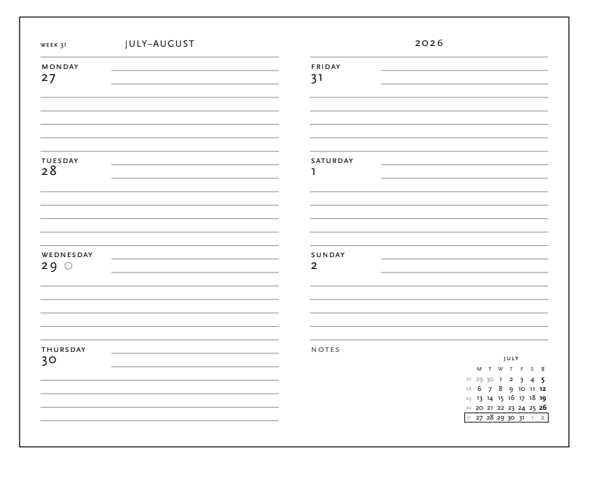 Sized at 95 × 140 mm, this mini hardcover planner slips easily into pockets, bags, or briefcases — perfect for organising your week whether you're at work, school, or on the go. Inside, 160 pages of 100 gsm acid-free paper provide a smooth, ink-friendly writing surface that’s perfect for jotting down tasks, events, and notes.