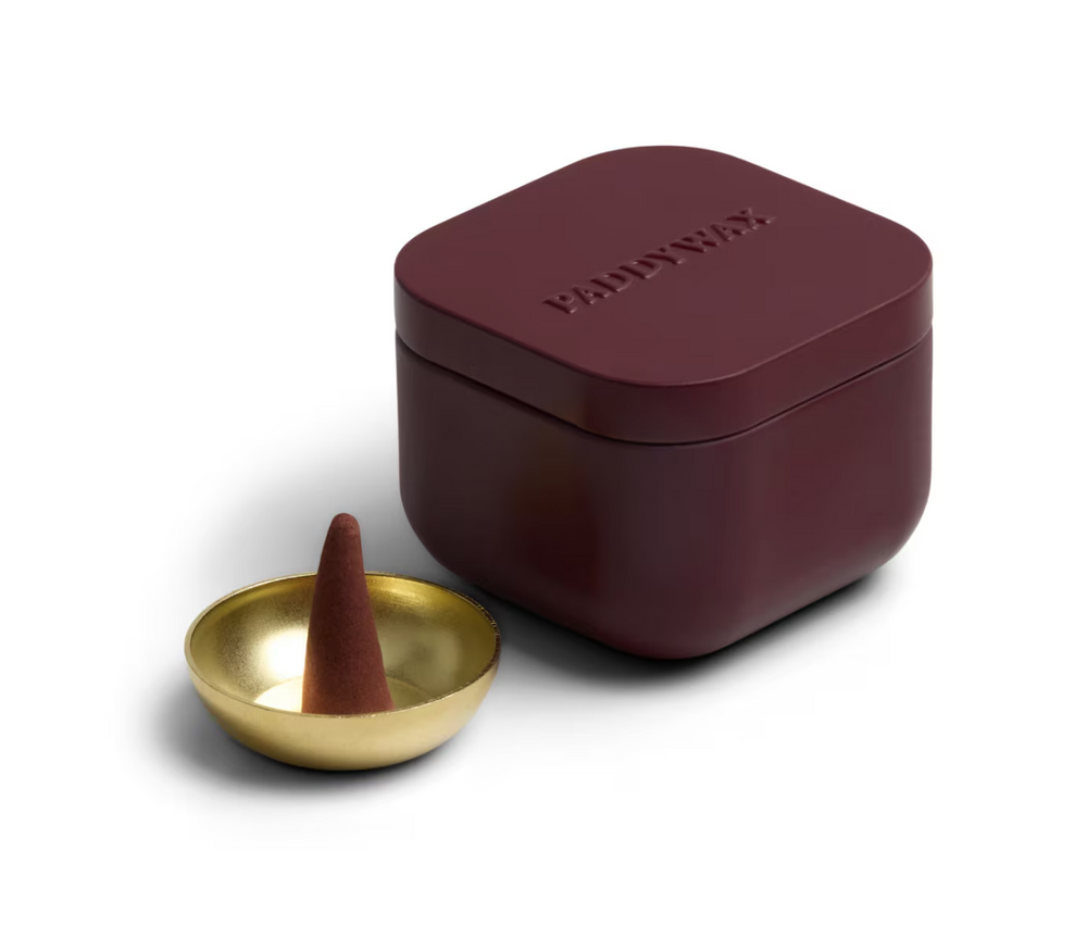 Fill your space with the rich, earthy aroma of Black Fig & Olive with our Maroon Cubed Metal Tin Incense Refills. This elegant set features 20 premium incense cones and a sleek cone holder, all packaged in a deep maroon cubed metal tin that’s perfect for storing, gifting, or travel.