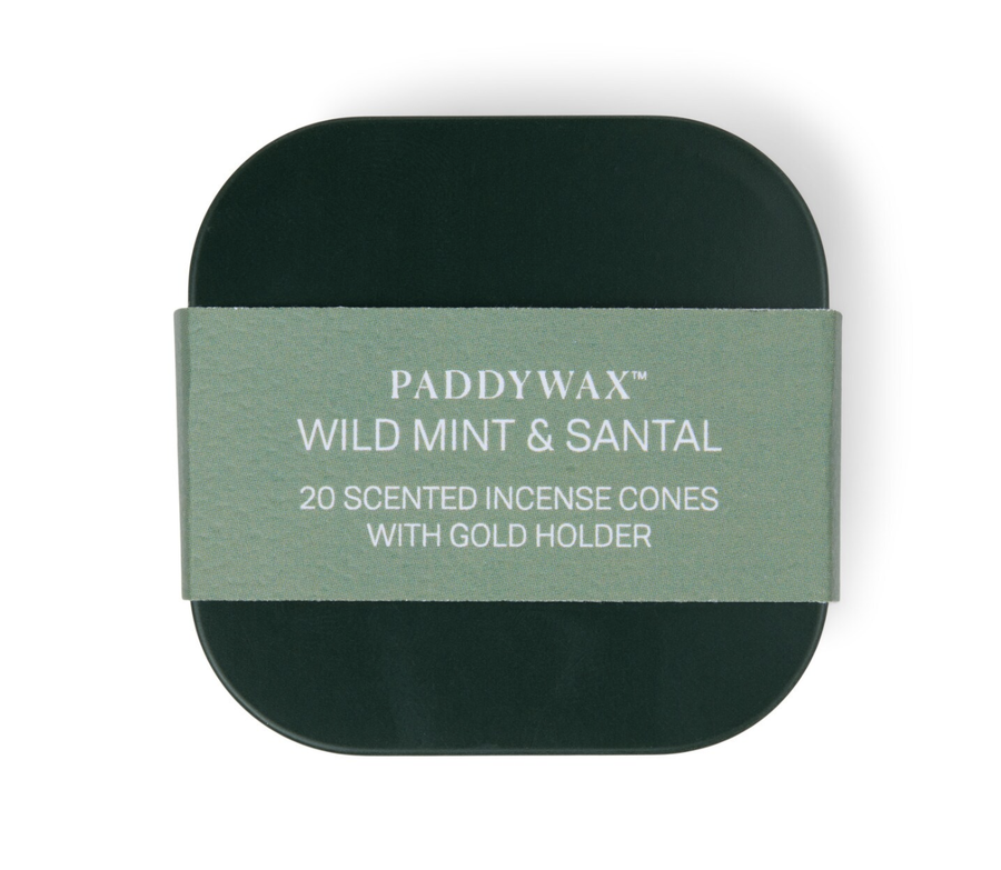 Incense Cones With Gold Holder - 20 Pack - Wild Mint & Santal