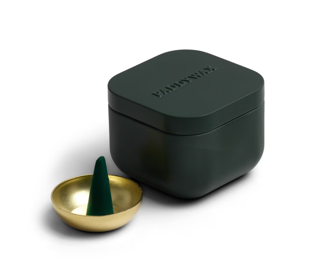 Refresh and soothe your environment with the crisp, calming aroma of Mint & Sandalwood from our Dark Green Cubed Metal Tin Incense Refills. This set includes 20 fragrant incense cones and a stylish incense cone holder, all presented in a durable dark green cubed metal tin for easy storage and gifting.