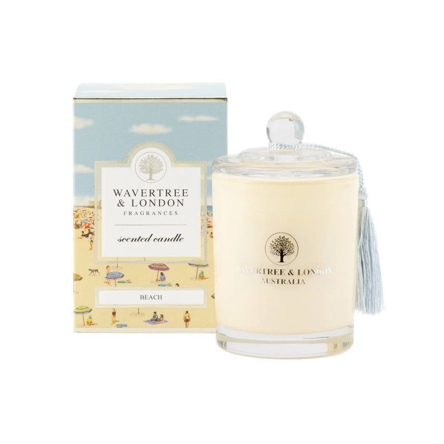 Happy Days at the Beach. Warm golden sand, clean fresh breezes and an endless blue ocean. All captured in our fabulous Beach Soy Candle. These decadent Wavertree & London Candles are carefully hand poured into our unique glass containers to create an intense aromatic experience. All our fragrances are truly exceptional and have been created by us to give a long lasting and exquisite perfumed ambiance.