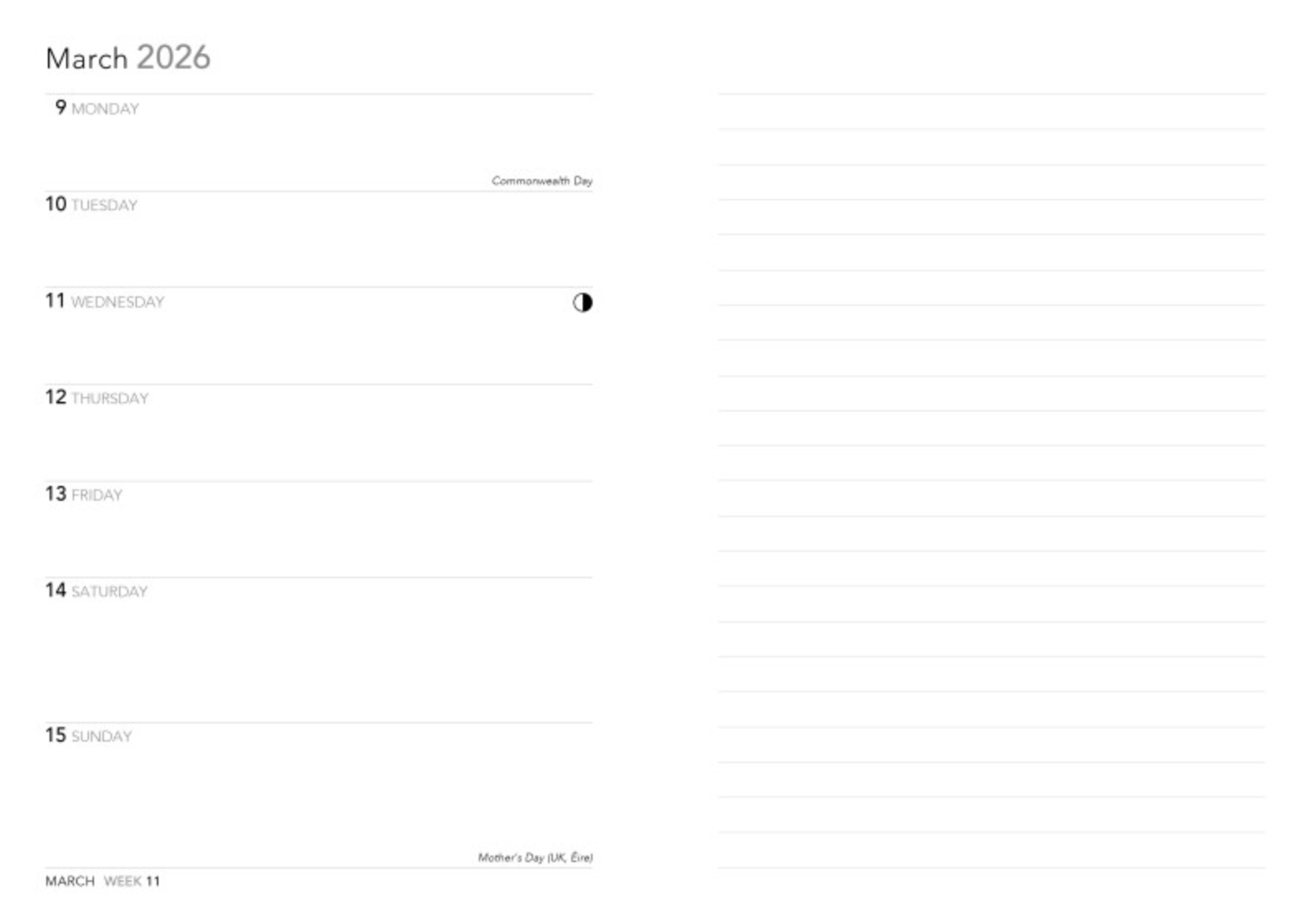 Part of the Artisan Art Diary collection by Flame Tree Studio, it features a flexible, soft-touch vegan leather cover, decorated page edges, and ribbon bookmarks. The page-to-view layout offers daily planning space, paired with a lined page for notes, lists, or reflections—perfect for artists, writers, students, or professionals.