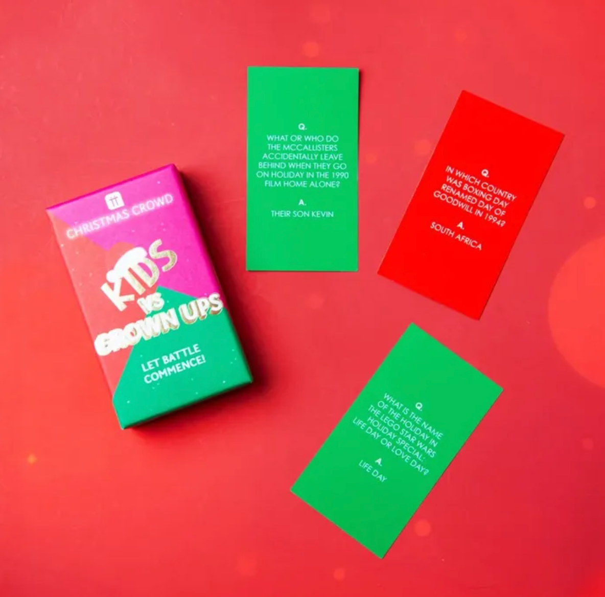 Get ready for some festive family fun with the Talking Tables Kids vs Grown Ups Christmas Crowd Trivia Game! Featuring 50 trivia cards on Christmas food, drinks, and seasonal traditions, this entertaining quiz is the ultimate showdown between generations.