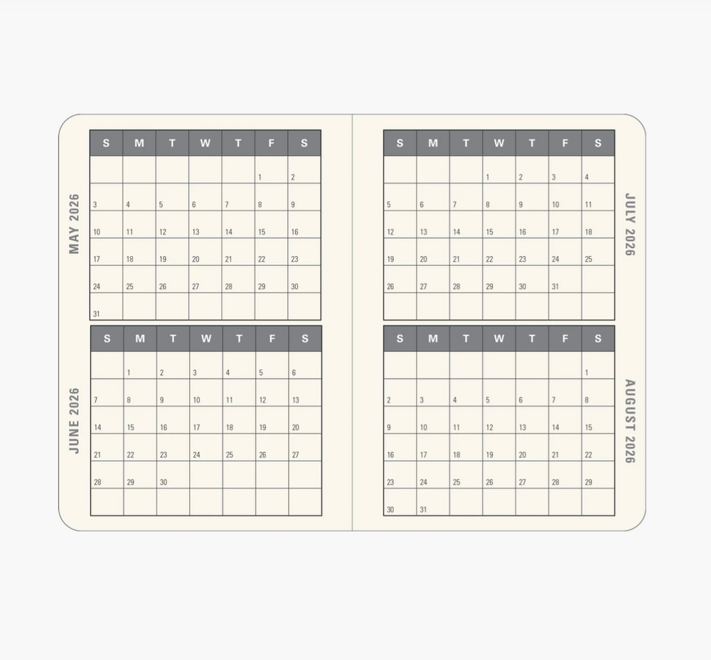 Monthly overview pages offer a full-month snapshot for long-range scheduling