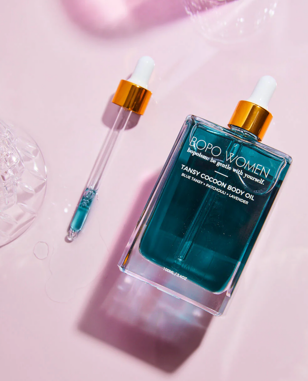 Our Tansy Cocoon Body Oil features a blend of restorative and deeply calming natural ingredients. Blue Tansy, a rare Moroccan essential oil, creates our body oil's sapphire hue and this blend also features coconut oil, sweet almond oil, lavender oil, mandarin oil and patchouli. These oils have been chosen specifically for their dual benefits of relaxing the body while calming inflamed, irritated or dry skin. Perfect for all skin types. Can also be used as a bath oil and on the ends of your hair.