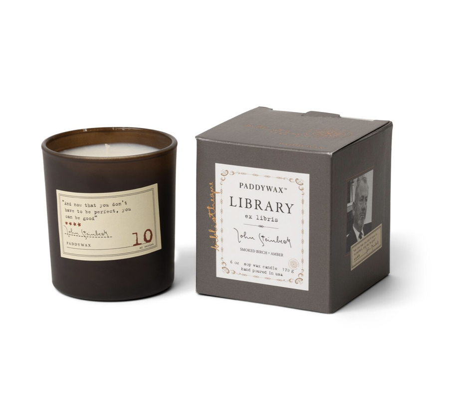 Paddywax Library 6.5oz. John Steinbeck Glass Candle Smoked - Birch & Amber